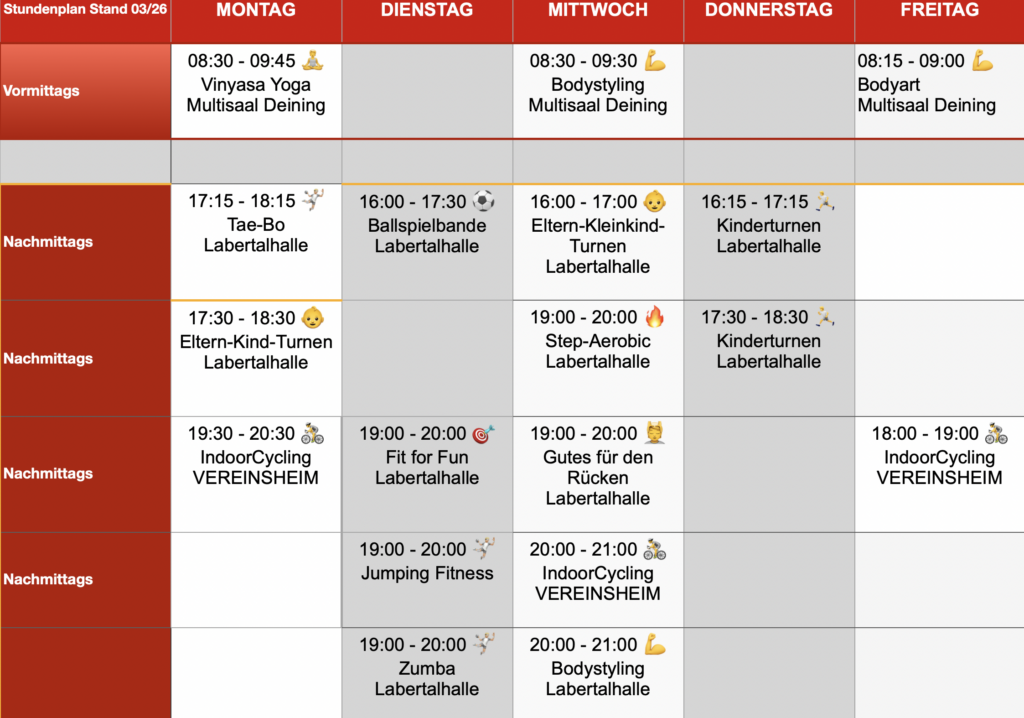 Die Stunden sind jeweils am Dienstag um 19:00 in der Labertalhalle, das Training dauert eine Stunde.
